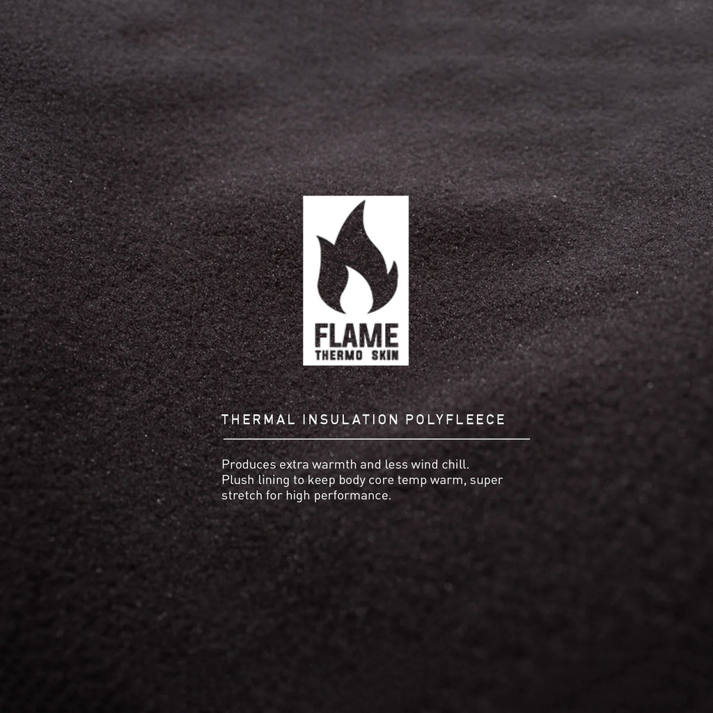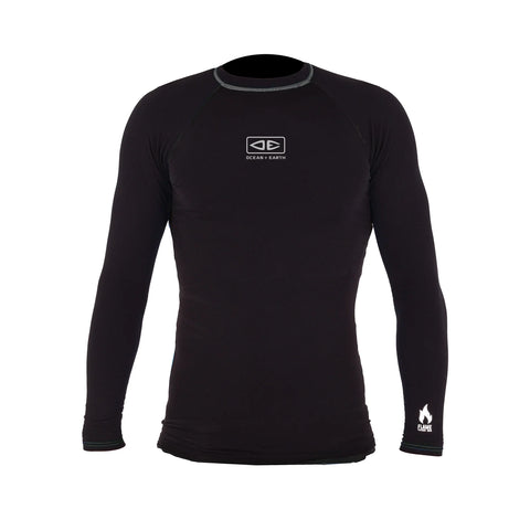 Mens Flame Long Sleeve Thermo Skin is the perfect base layer, with fleece lining to provide extra warmth under your wetsuit. Suitable as a paddle shirt or for summer surfing. This Thermo skin provides the stretch of a rash vest with added warmth.